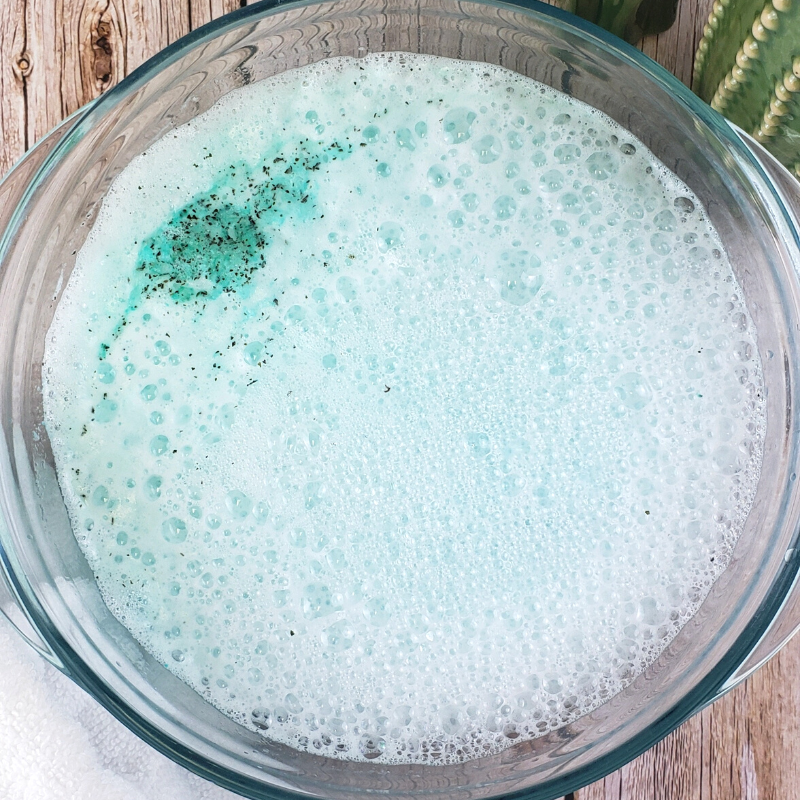 Llene de agua el recipiente donde realiza las pedicuras o manicuras y agregue la bomba efervescente.
